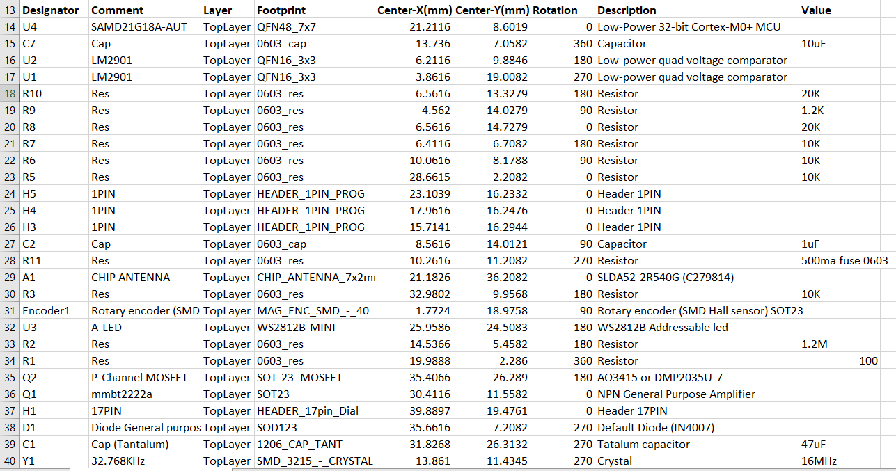 For every PCB you design, there is an associated pick and place file that can be generated, this can be done from the PCB design software. This pick and place file should contain the following columns: