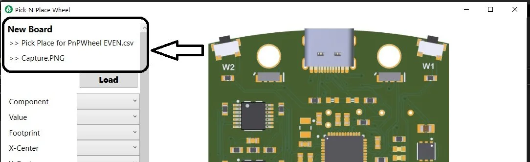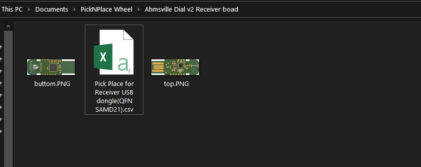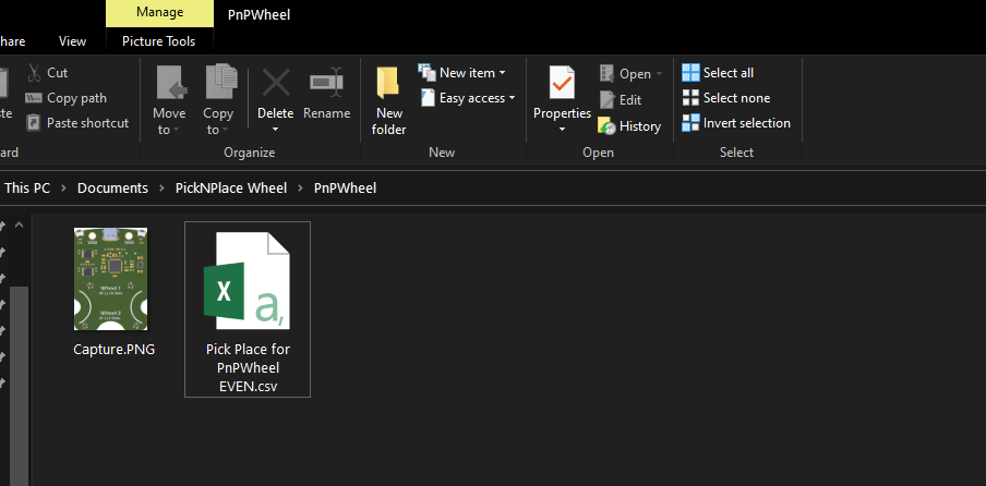 After generating the .csv file and the board image, you’ll need to copy both files into a new folder, this will be the working folder that will be used by the Pick ‘N’ Place Wheel App for the specific PCB projects, the folder should contain only one csv and one image, for a PCB that only has components on the top side, one csv and two images for a PCB with components on the top and bottom sides.