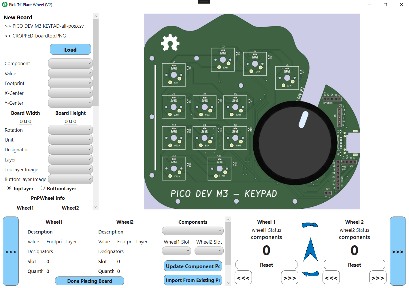 After any of the two-loading process described above has been completed, you are now fully set up to populate your first PCB with the Pick ‘N’ Place Wheel.