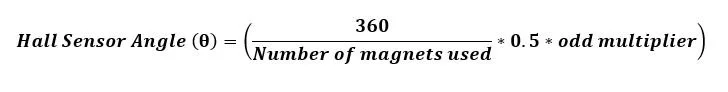 Where “odd multiplier” is an odd positive integer value that ensures the proper offset between the hall sensors, this value can also be used to customize the sensor arrangement in the containing system, I typically choose a value that gets me a separation angle around 90 degrees, but you can go as low as 3.
